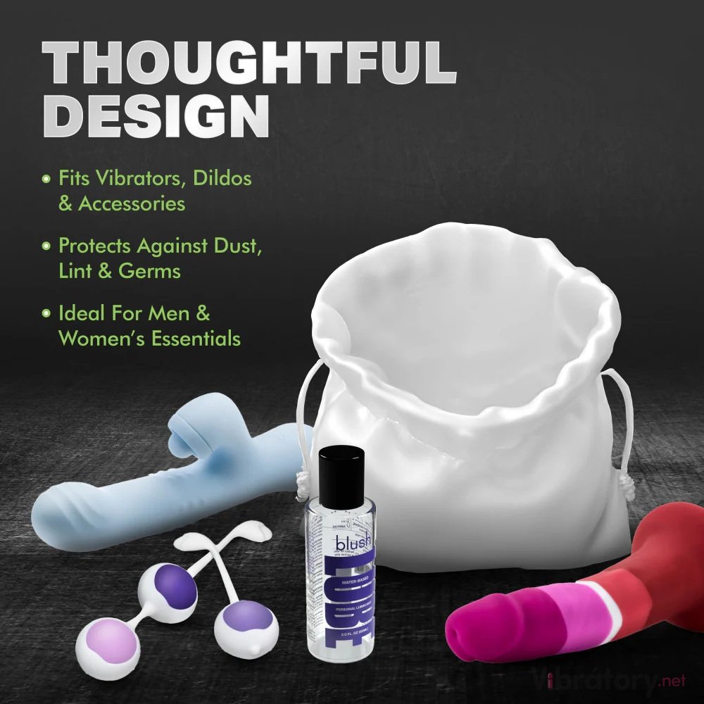 Pytlík na erotické pomůcky má speciální antibakteriální povrch a stahovací šňůrky pro bezpečné uložení a ochranu vaší hračky.