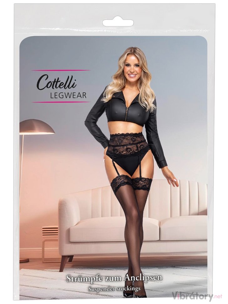 Černé punčochy s krajkovým lemem Cottelli od firmy Cottelli