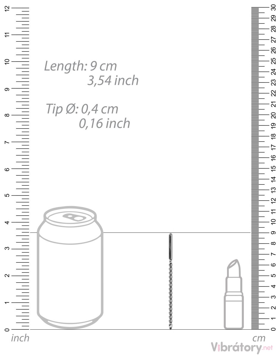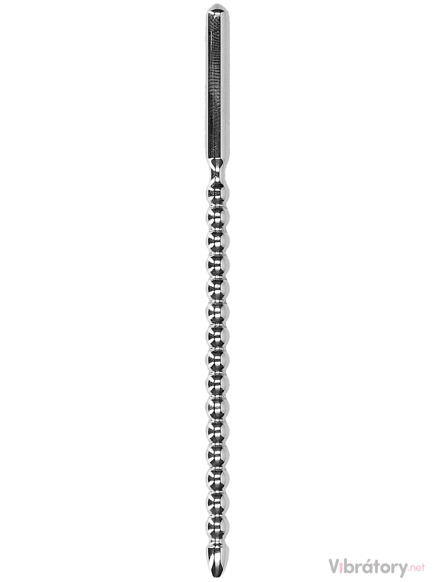 Dilatátor má podobu sondy s kuličkami pro intenzivní stimulaci močové trubice při zasouvání i vytahování.