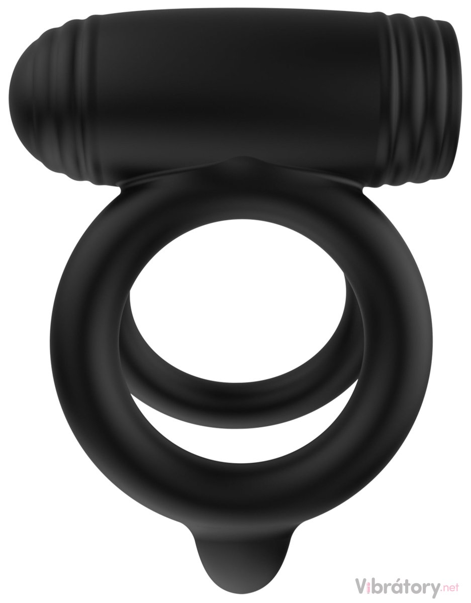 Dvojitý kroužek zaškrtí penis i varlata, pomůže k lepší a déletrvající erekci a navíc má silné a hluboké vibrace, kterými provibruje vulvu a klitoris partnerky.
