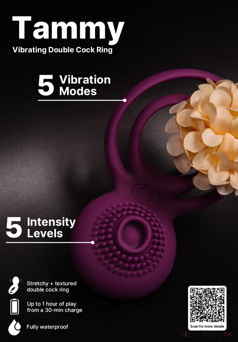 Kroužek Tammy pomůže k lepší a déletrvající erekci a zpestří sex vibracemi. Má speciální stimulační texturu pro intenzivnější potěšení klitorisu.