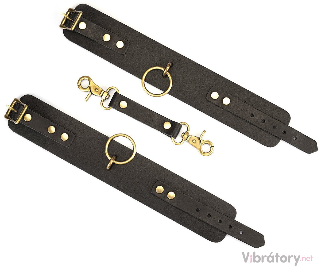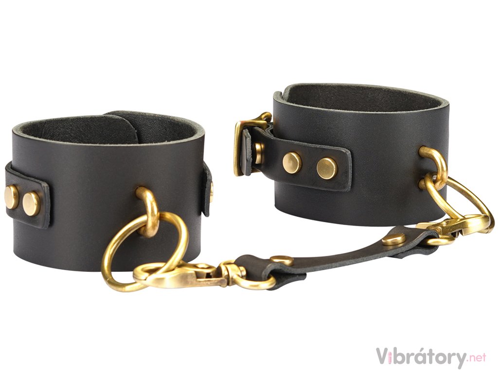 Pouta jsou vyrobená z tlusté hovězí kůže – jsou pevná a odolná a hodí se i na drsnější BDSM hry. Jsou spojená koženým páskem s rychloupínacími karabinkami.