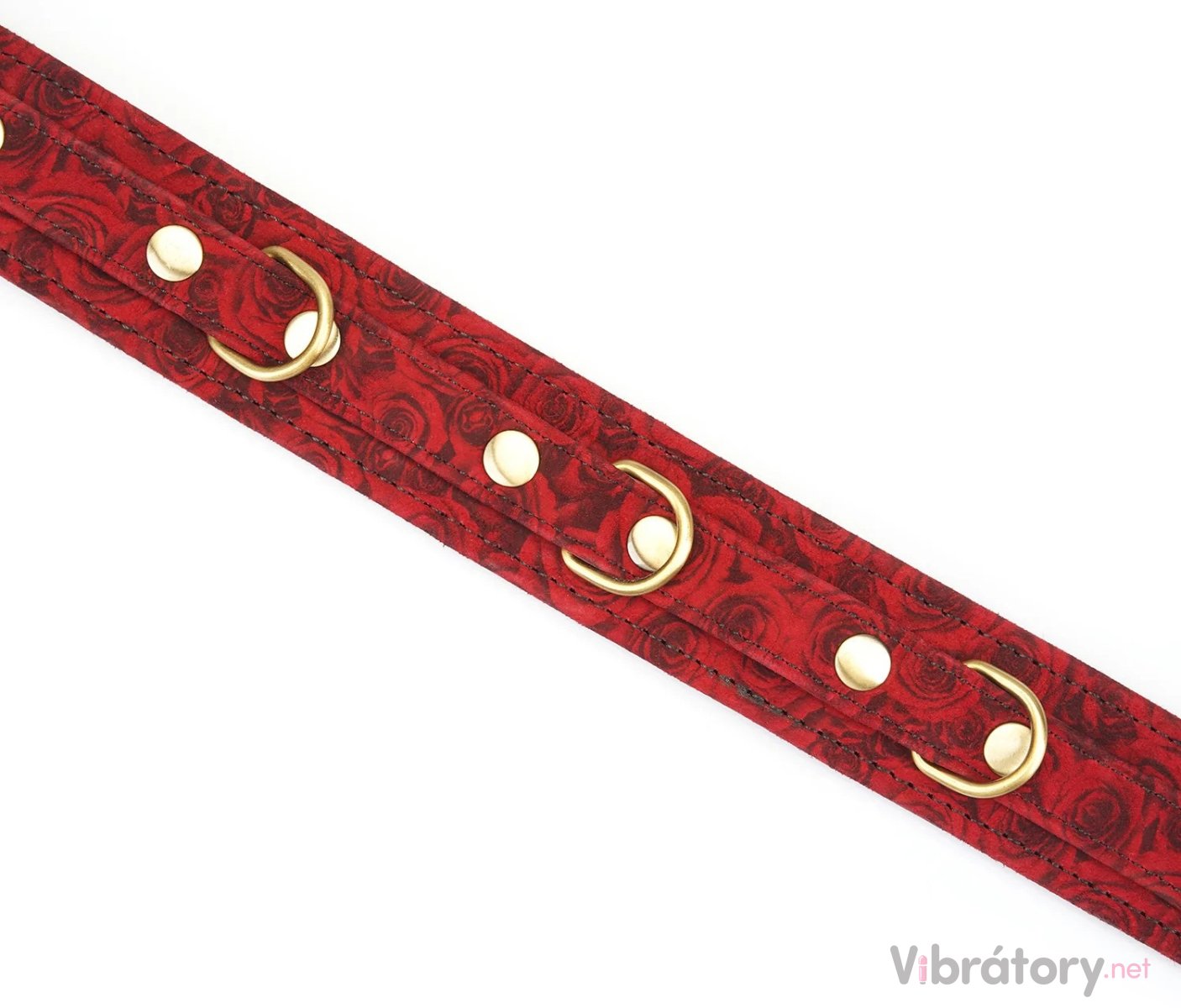 Obojek s vodítkem Red Rosy je vyrobený z jehněčí kůže s potiskem s motivem růží. Je změkčený, takže se pohodlně nosí.