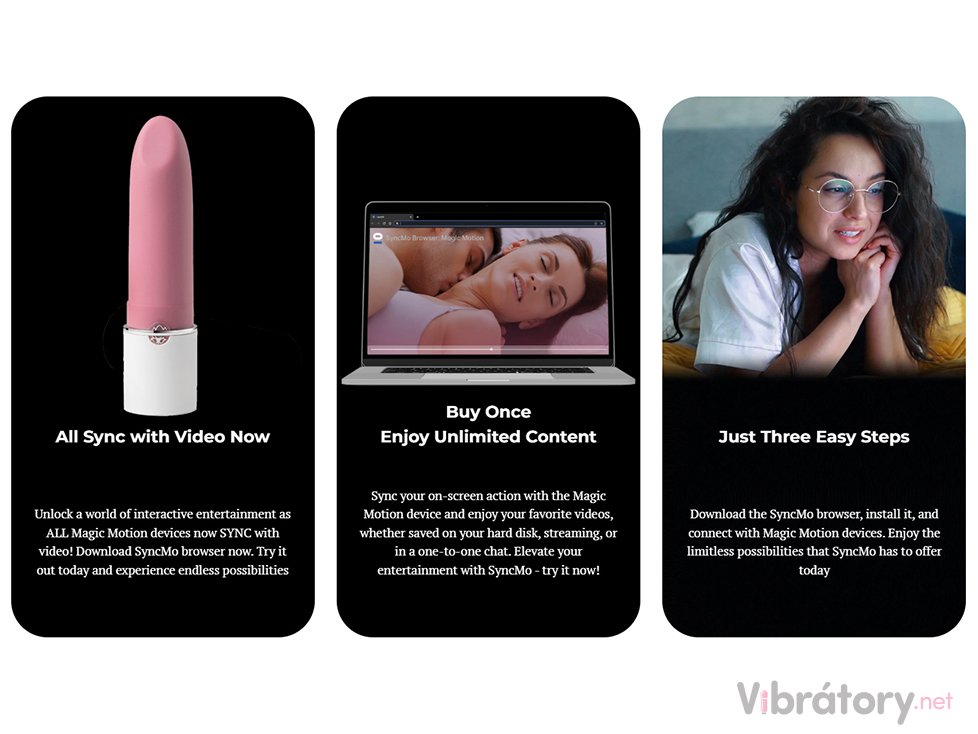 Vibrátor je kompatibilní také s placeným webovým prohlížečem SyncMo, který promění každé erotické video nebo chat v interaktivní. Hračka pak vibracemi reaguje na to, co se ve videu děje. Webový prohlížeč lze nainstalovat na Windows i MacOS a ke správné funkčnosti je potřeba mít počítač s Bluetooth.