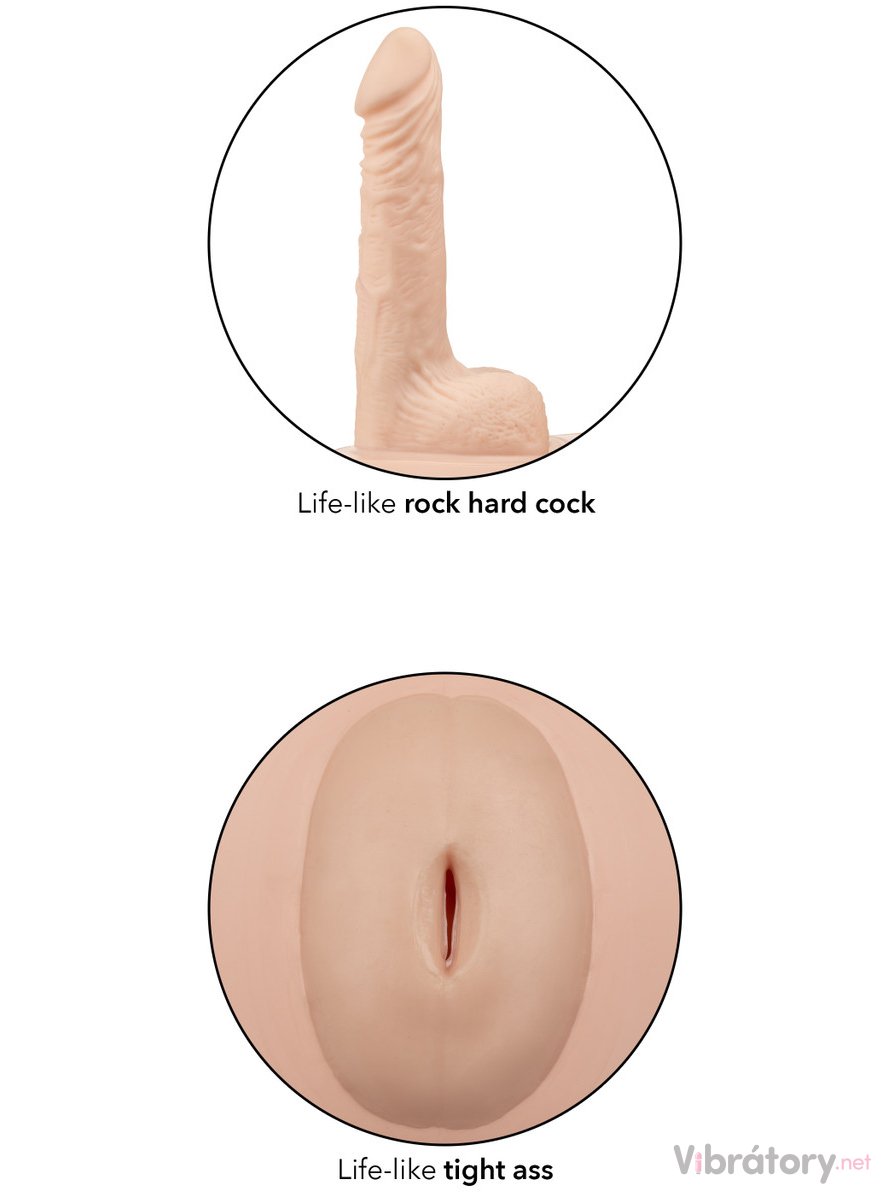Zadeček je z měkkého realistického materiálu TPE a uvnitř tunýlku jsou stimulační výstupky pro intenzivnější potěšení.