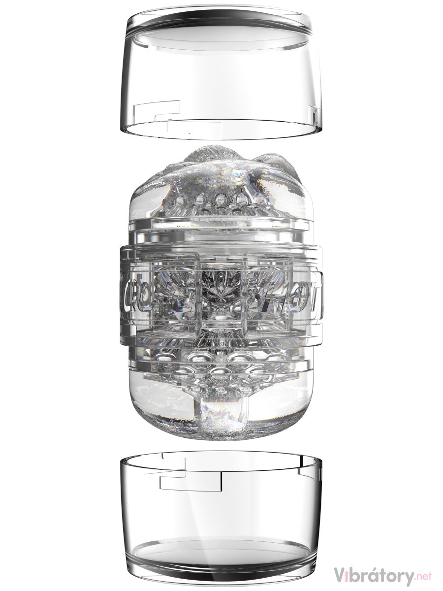 Průsvitné pouzdro z tvrdého plastu se dobře drží v ruce a navíc umožňuje sledovat váš penis v akci. Vnitřní vložku chrání dvě víčka a lze ji z pouzdra snadno vyjmout a vyčistit.