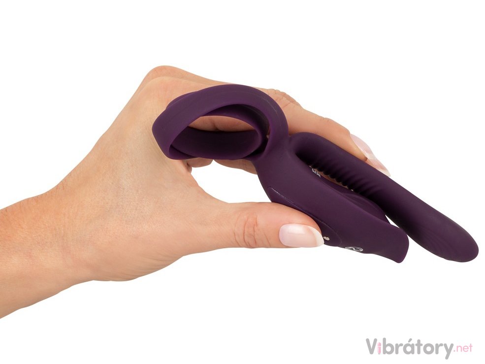 Prodloužená plochá část vibrátoru bude ležet na horní straně penisu a zvětší tak jeho průměr. Při zásunech potěší vibracemi nejen penis, ale i bod G a partnerka si užije větší zaplnění vaginy. Na horní straně této ploché části jsou stimulační linky pro intenzivnější potěšení.