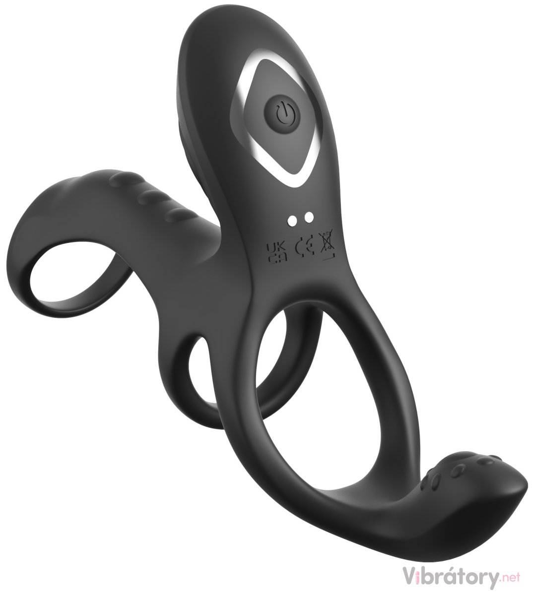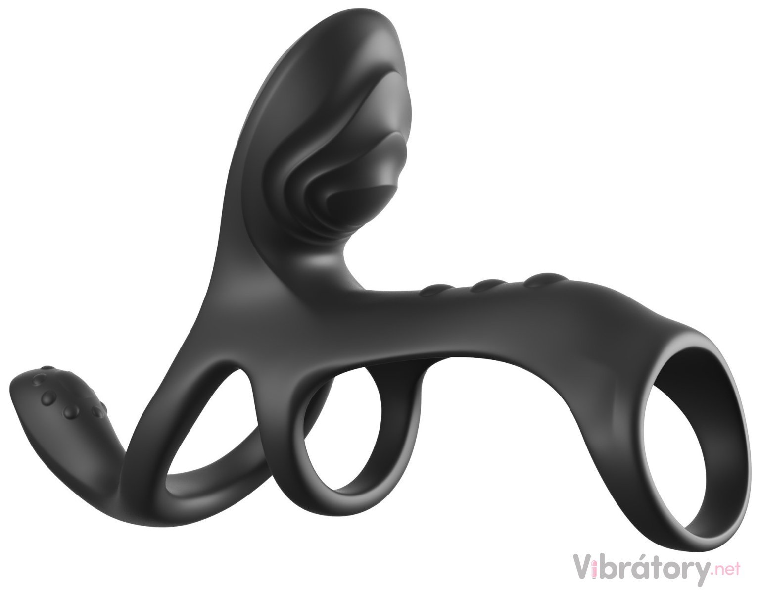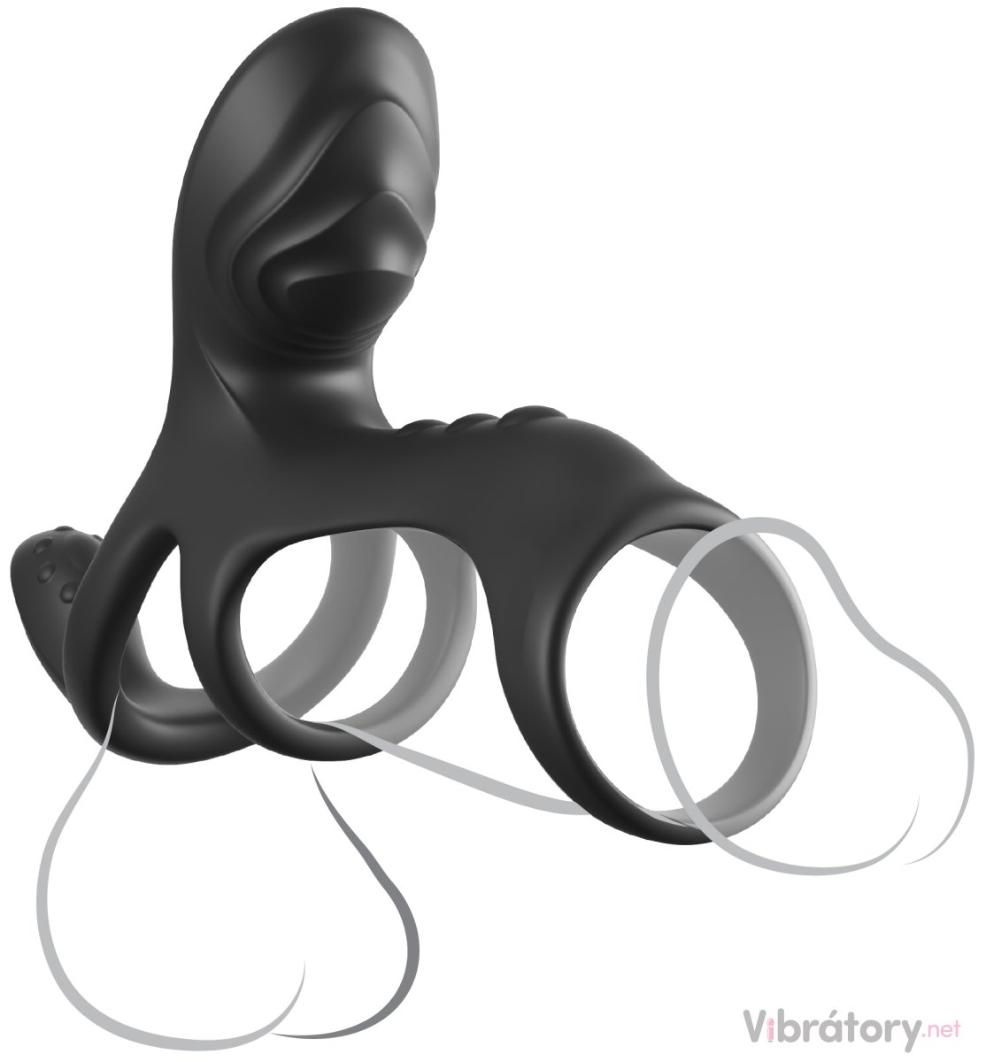 Jak to funguje? Prodloužená plochá část vibrátoru bude po nasazení ležet na horní straně penisu a zvětší tak jeho průměr. Při sexu potěší vibracemi penis i bod G a partnerka si užije větší zaplnění vaginy. Kroužky navíc zaškrtí penis a pomůžou k lepší erekci. 2 výstupky pak provibrují i klitoris a hráz.