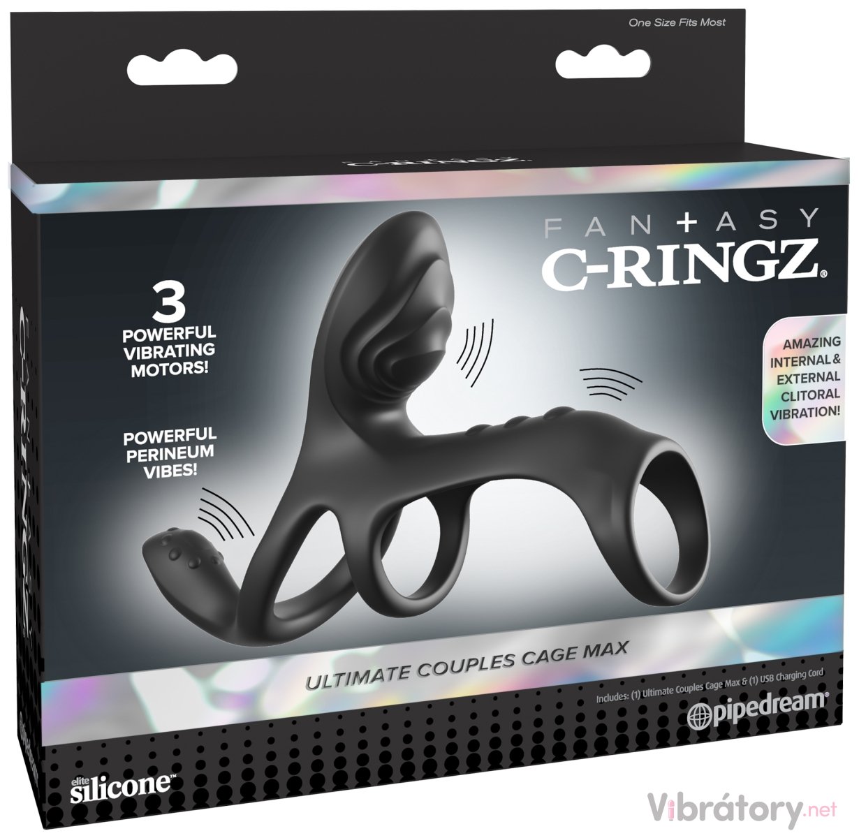 Párový vibrátor s kroužky na penis Ultimate Couples Cage Max vyrobený značkou Pipedream