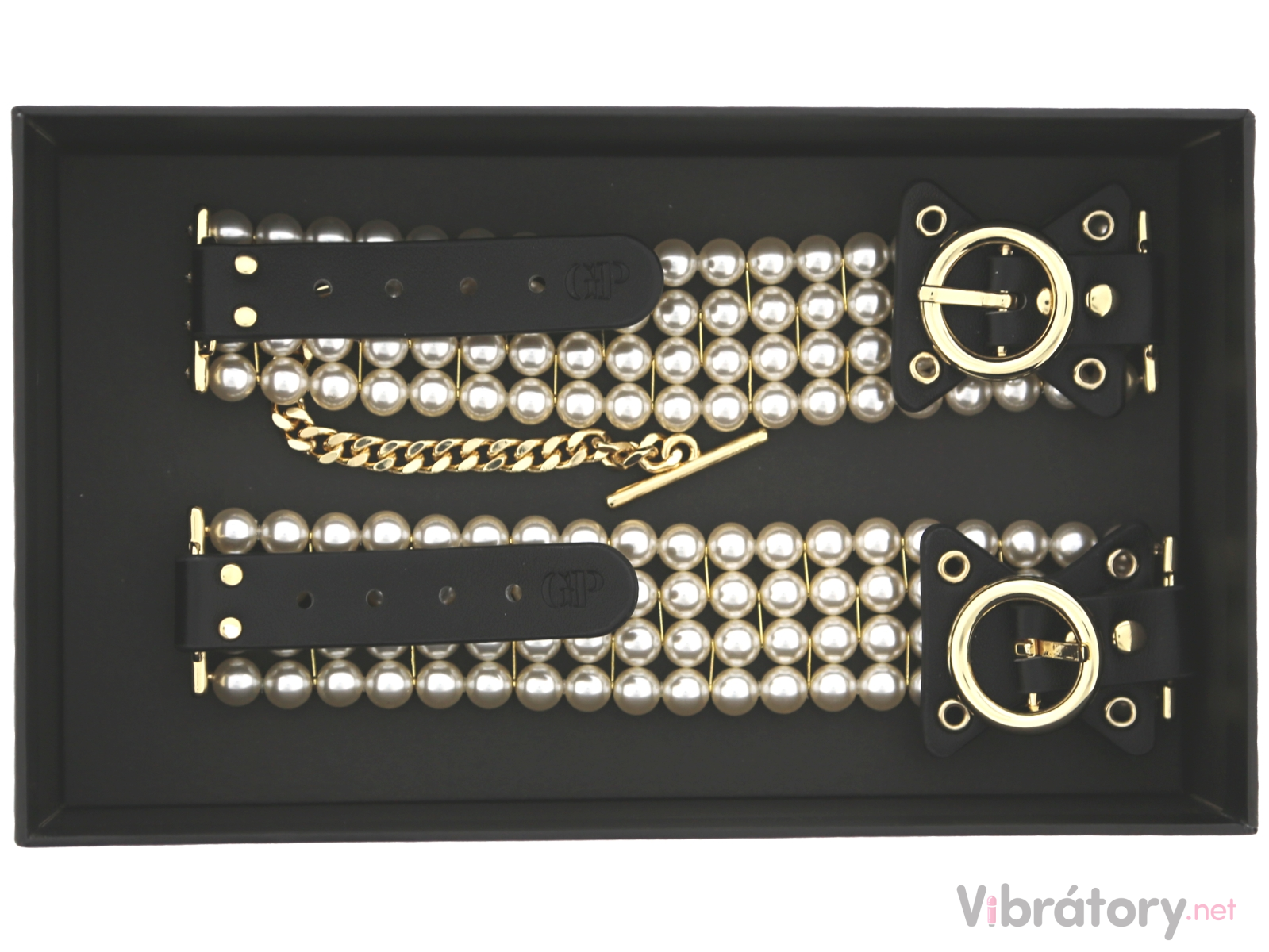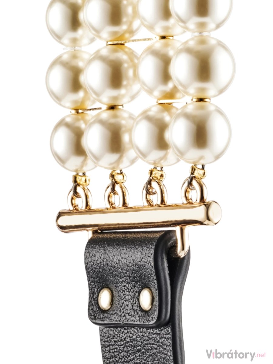 Pouta kombinují perly, měkkou umělou kůži a zlaté detaily – poslouží jako elegantní pomůcka pro něžné a stylové bondage hry.