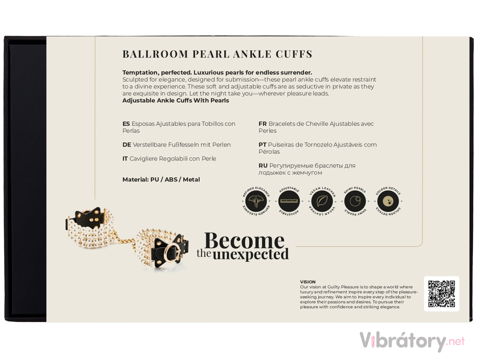 Jsou spojená kovovým řetízkem, který lze jednoduše odepnout – pouta můžete využít i jako ozdobu kotníků. Více