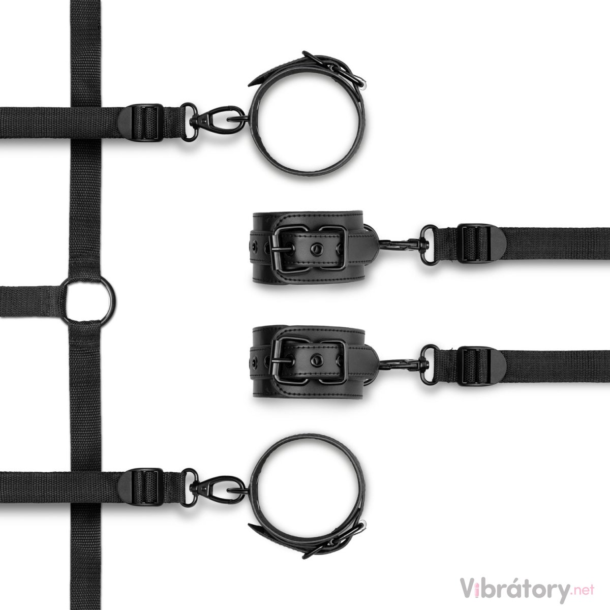Sada na bondáž je to povedená (lehce se dá nachystat a může zůstat schovaná pod matračkou připravená na další použití), popruhy jsou nastavitelné a dostatečně dlouhé. Pouta se zapínají dobře a drží jak mají. Nerozepnou se, ani když s nima víc nechtěně škubnu. Umím si ale představit, že pro fakt drobnou ženu nebo muže můžou být volnější.