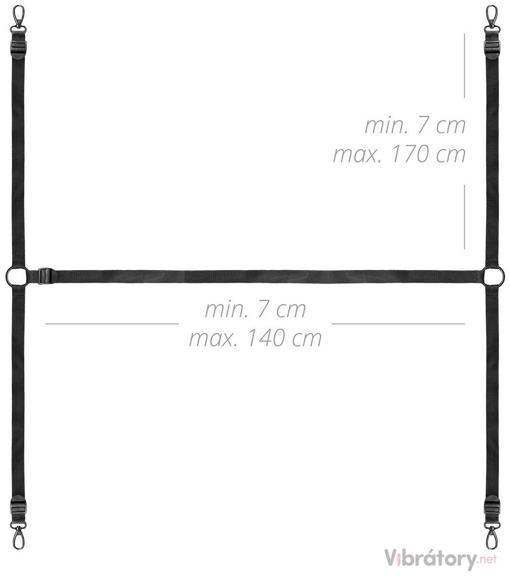Pouta jsou k popruhům připevněna pomocí rychloupínacích karabinek (karabinky jsou připevněny k popruhům) – pouta můžete připnout i k jiným BDSM pomůckám.