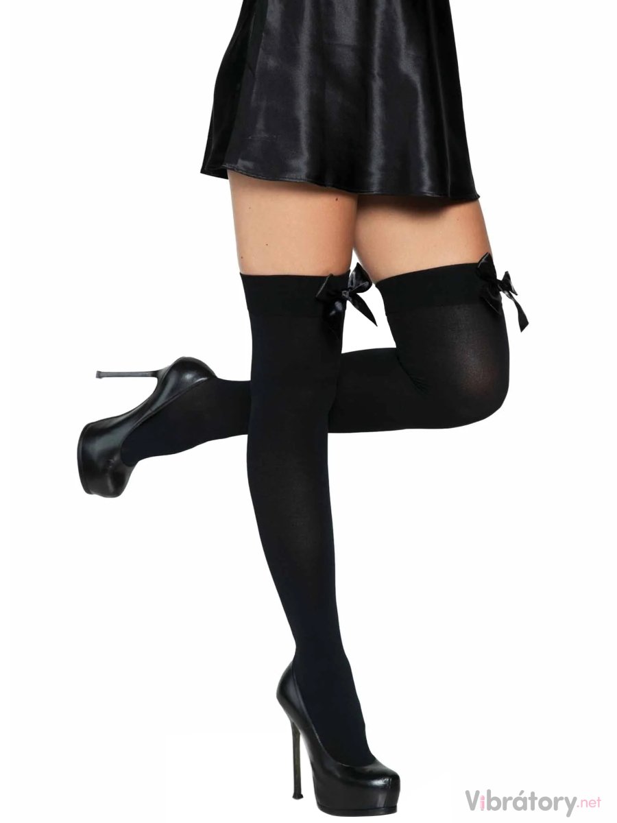 Punčochy s velkou saténovou mašlí, neprůhledné