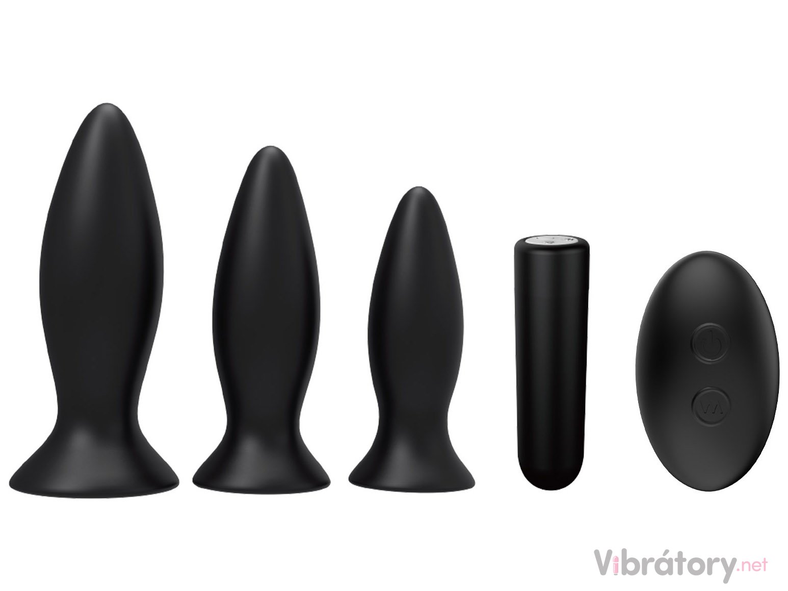 V sadě najdete 3 anální kolíky o různém průměru a 1 vibrační patronu – začnete nejmenším kolíkem a postupně se propracujete až k tomu největšímu. V každém kolíku je otvor pro zasunutí vibrační patrony.