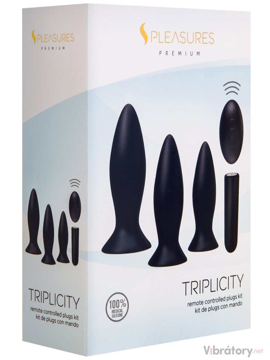 Sada análních kolíků a vibrační patrony Triplicity slouží pro postupné roztahování análního otvoru a přípravu na anální sex. Vibrační patrona vám navíc zpestří trénink vibracemi.