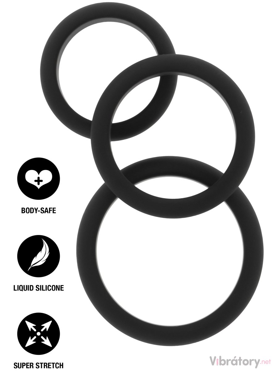Sada obsahuje 3 kroužky o různých průměrech, které můžete libovolně kombinovat podle potřeby – pro stažení samotného penisu i penisu s varlaty.