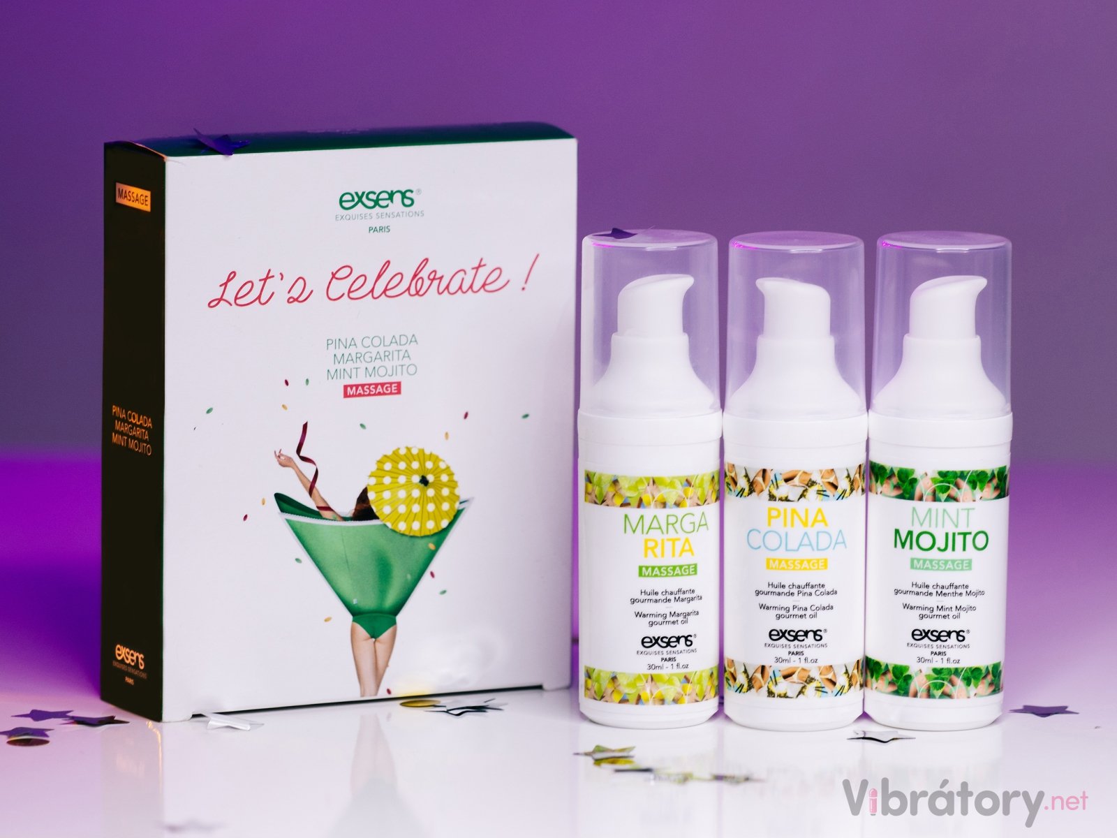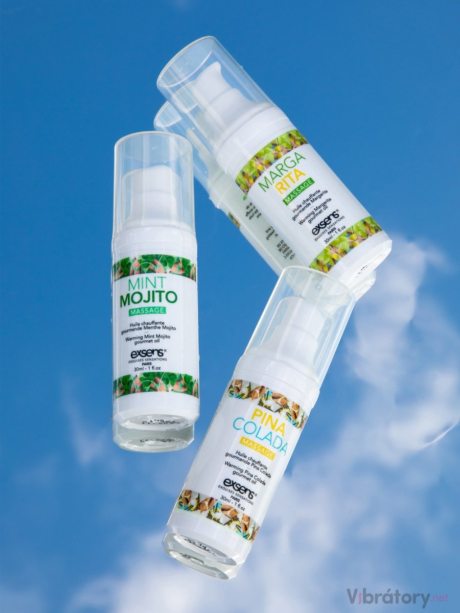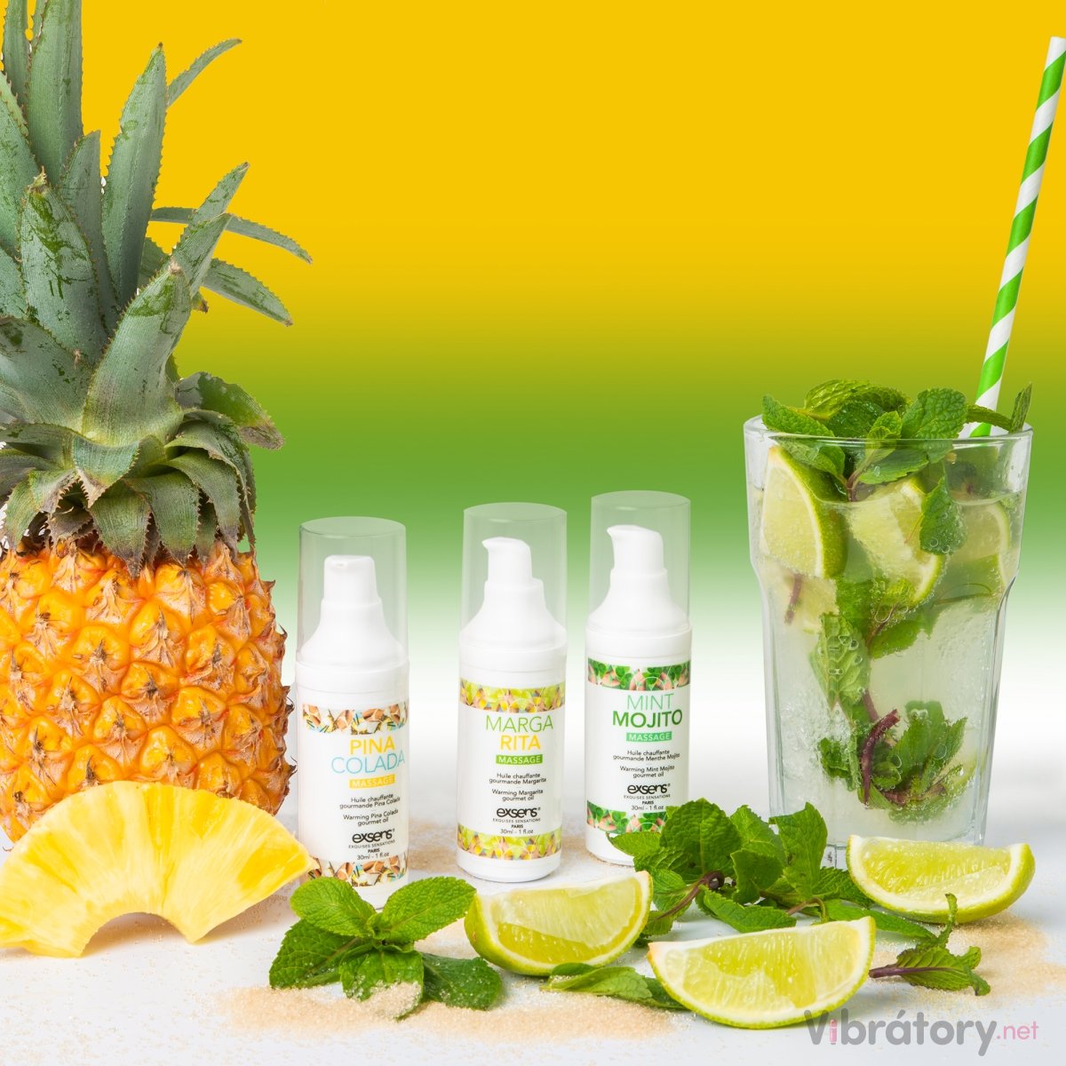 Sada obsahuje 3 oleje s příchutí známých koktejlů (Piña Colada, Margarita a Mint Mojito). Oleje jsou jedlé a mají hřejivý efekt, který zesílí při kontaktu úst s pokožkou.