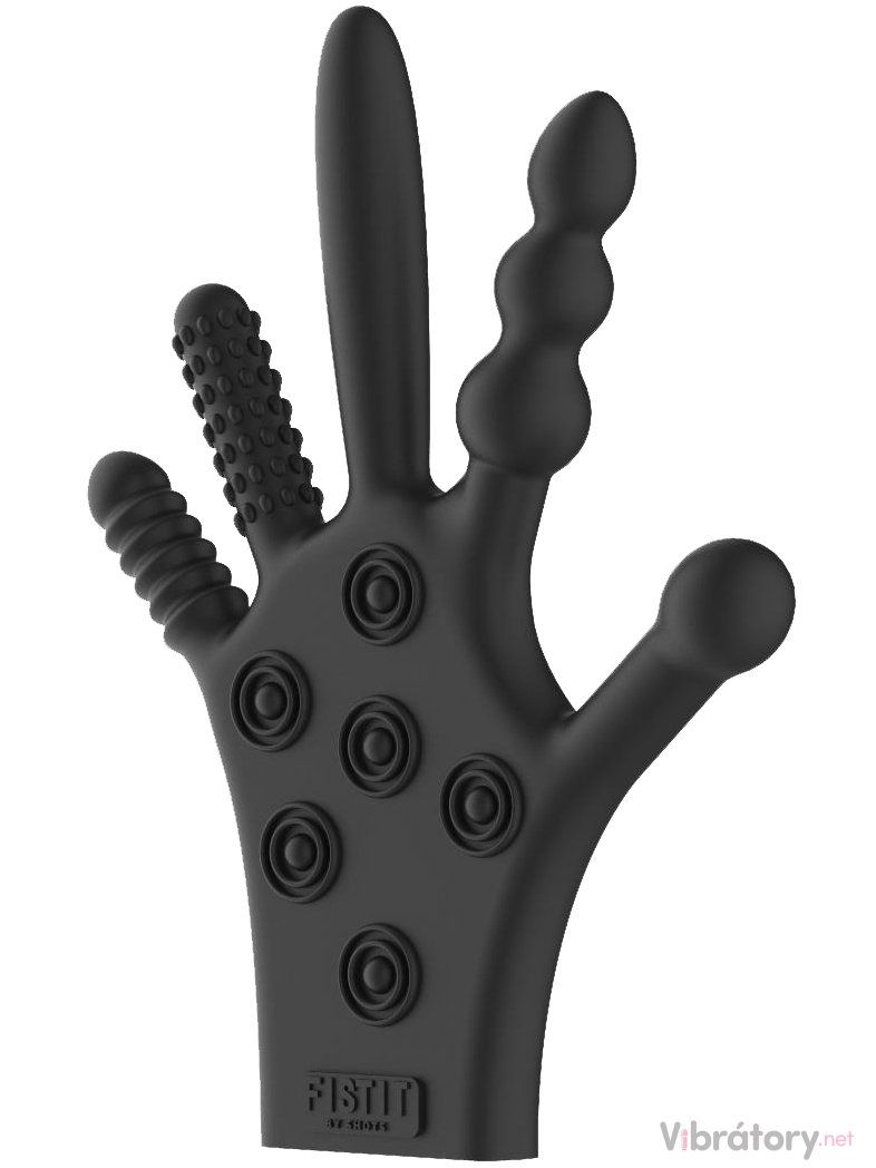 Rukavice má na každém prstu i hřbetu ruky jinou stimulační texturu – hodí se na různorodou vaginální i anální stimulaci a fisting.