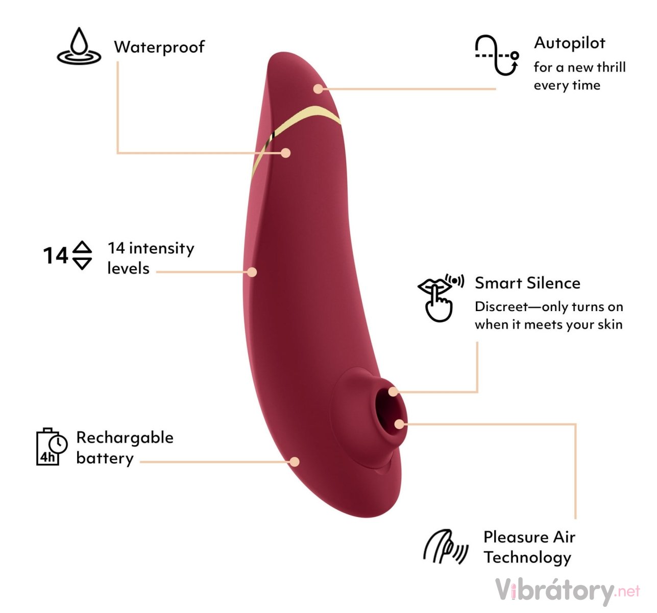 Stimulátor má oblíbenou technologii Pleasure Air – potěší klitoris tlakovými vlnami a jemným sáním, aniž by se ho dotýkal. Navíc má funkce Smart Silence a Autopilot: