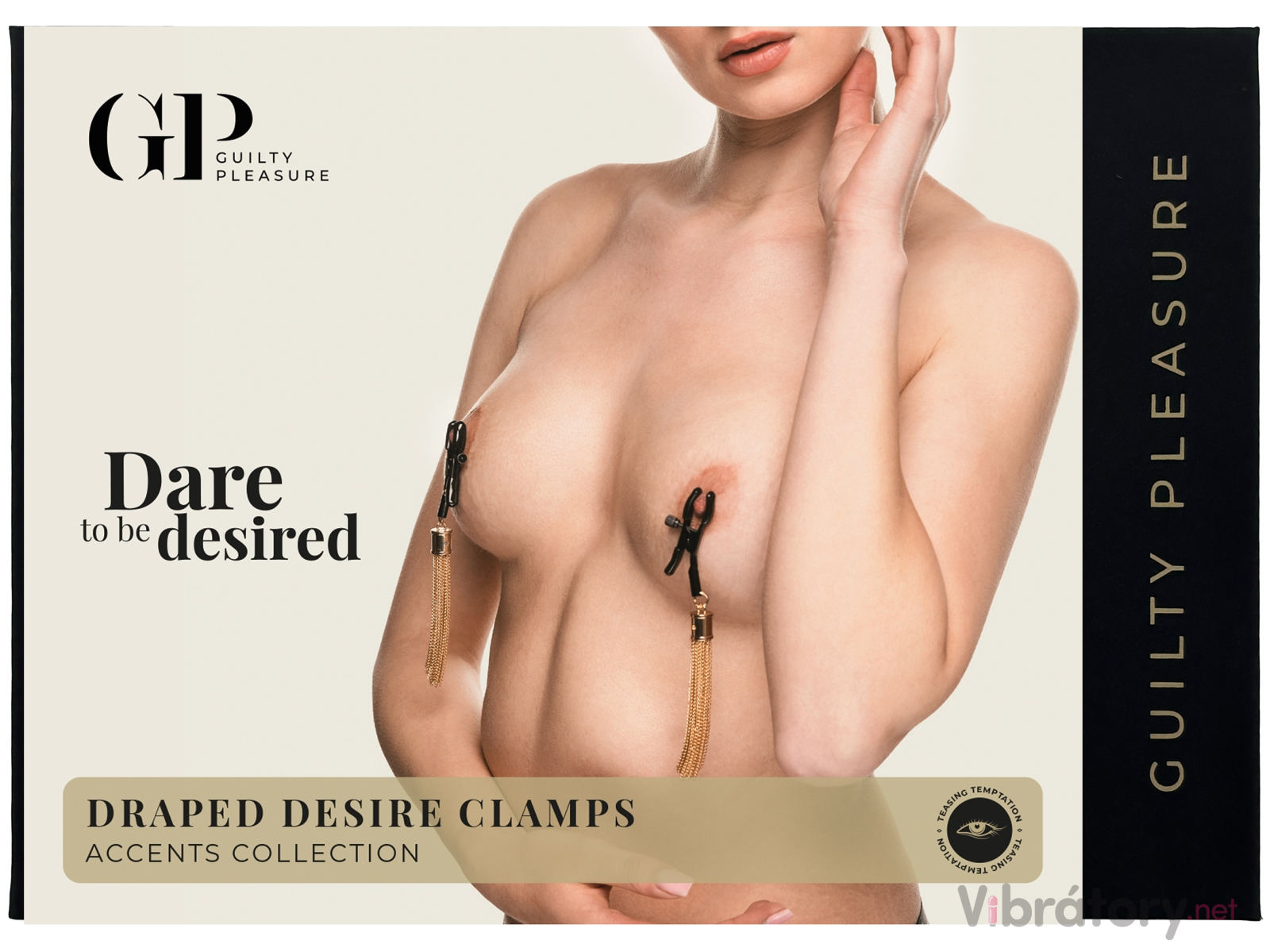 Svorky mají nastavitelnou sílu stisku a jsou ozdobené střapci ze zlatých řetízků – poslouží nejen k BDSM hrám, ale i ozdobení ňader.