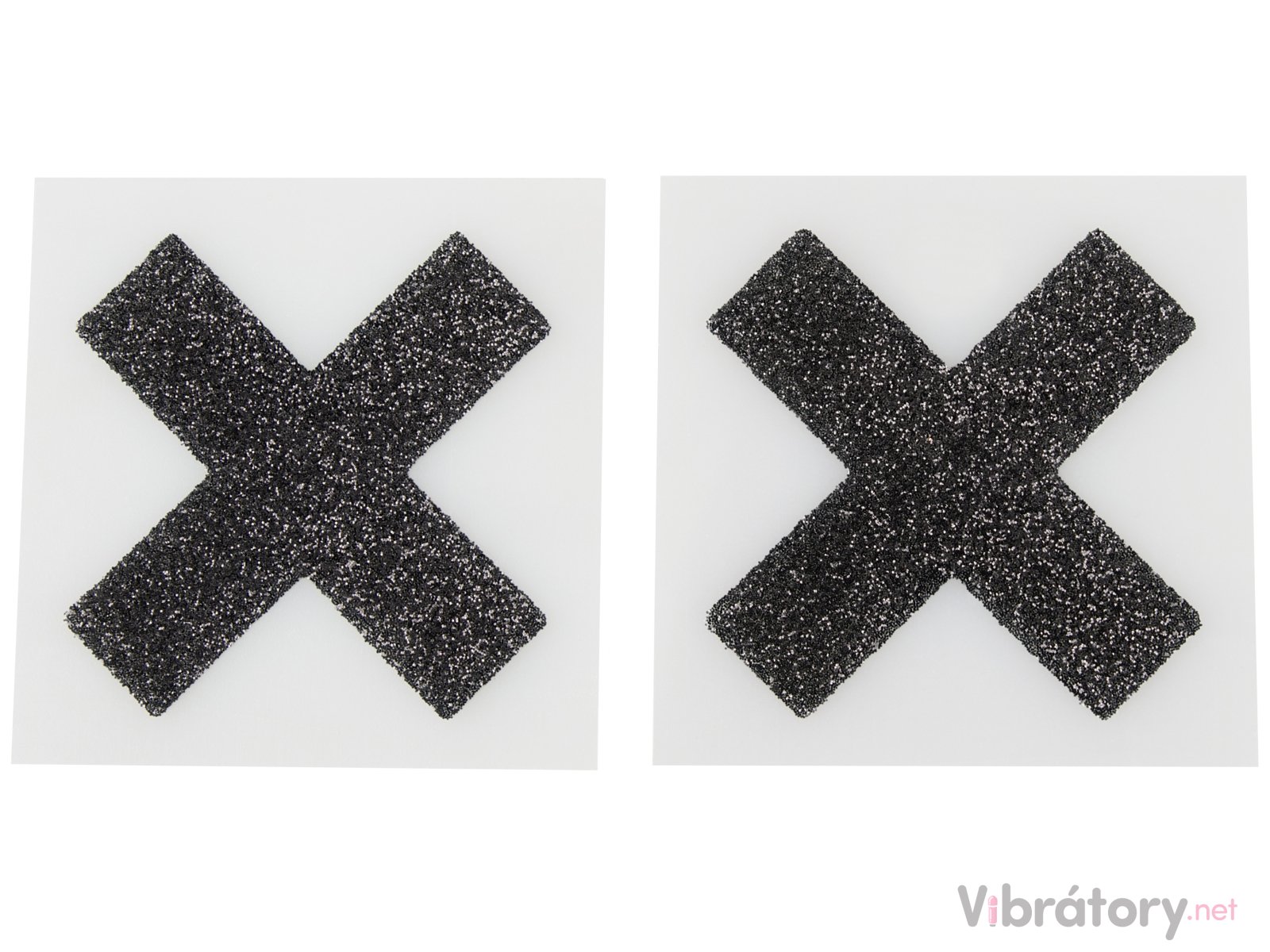 Třpytivé samolepky ve tvaru X nalepíte na prsa díky akrylátovému lepidlu, které je šetrné k lidské pokožce.