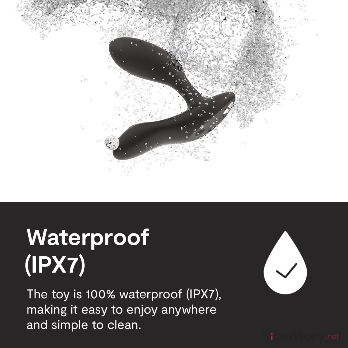 Je vyrobený ze silikonu, který je pevný na dotek, bezpečný pro lidské tělo a příjemný na omak. Díky 100% voděodolnosti (IPX7 – odolnost proti ponoření do vody) si s ním užijete i ve sprše nebo vaně.