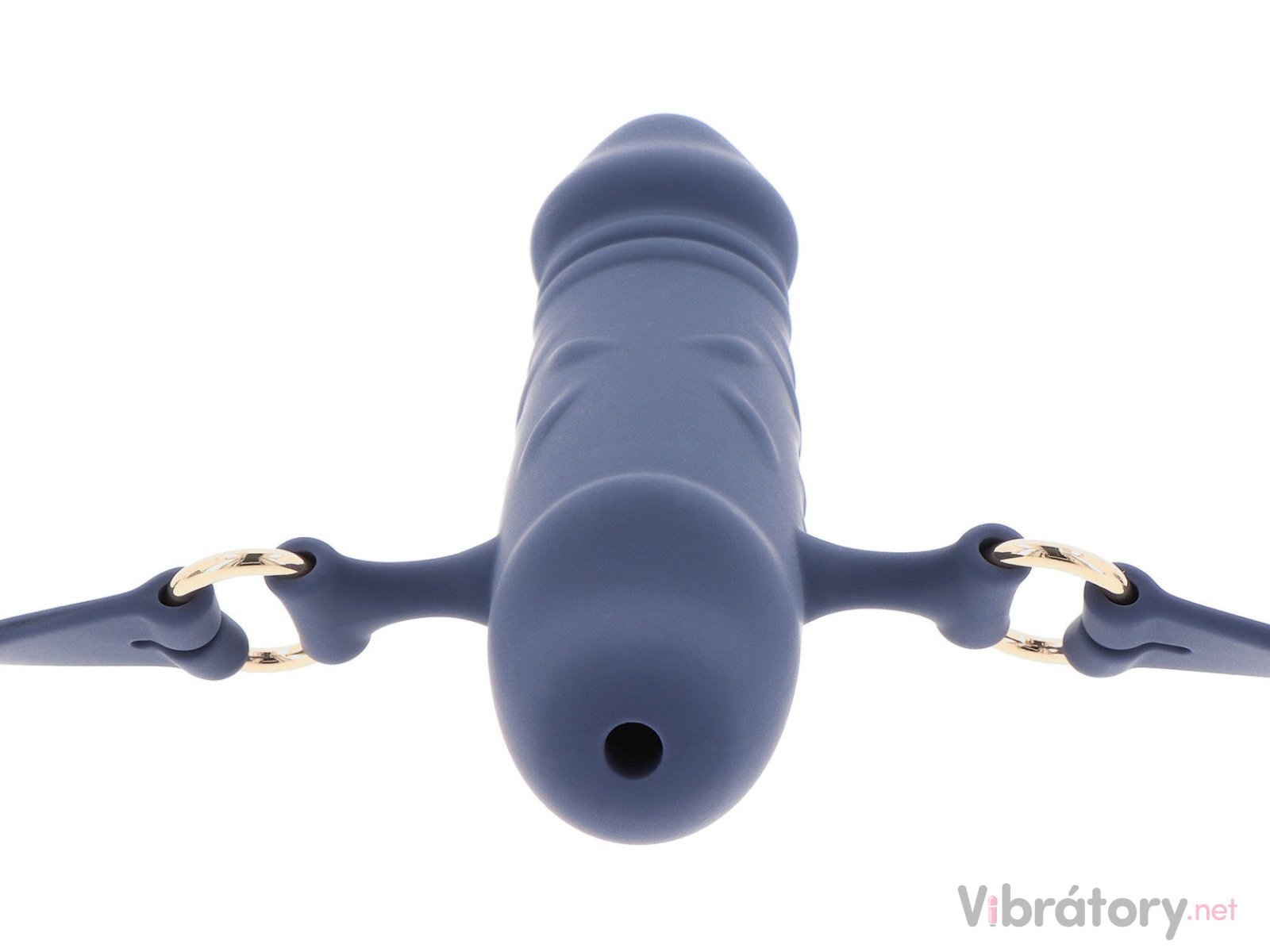 Silikonový řemínek má z vnější strany elegantní texturu a díky kovové přezce se snadno zapíná a velikost si přizpůsobíte podle potřeby. Přezku lze navíc zamknout pomocí malého zámku – partner si roubík nesundá bez vašeho svolení.