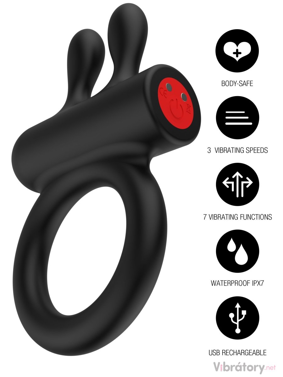 Celkem se můžete těšit na 10 vibračních programů (3 intenzity + 7 vzorů). Je elastický, takže se snadno nasazuje na penis a zároveň se postará o kvalitní zaškrcení. 2 ohebné výstupky obejmou klitoris a dopřejí mu vibrace z obou stran.